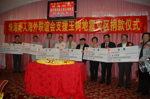 中新網(wǎng)4月30日電 據(jù)珠海僑務(wù)局消息,地震災(zāi)情牽動(dòng)著億萬中國(guó)人民的心,也受到珠海海外聯(lián)誼會(huì)的潮商們的高度關(guān)注。為積極支持玉樹的災(zāi)后重建工作,繼08年汶川大地震該會(huì)捐資40萬元支持綿虒鎮(zhèn)涂禹山村重建格子巖組“僑心村”后,珠海潮人海外聯(lián)誼會(huì)又于4月27日舉辦現(xiàn)場(chǎng)捐款活動(dòng),呼吁珠海的廣大潮商伸出援手,募捐善款,幫助地震災(zāi)區(qū)同胞,抗震救災(zāi)、重建家園,為抗震救災(zāi)行動(dòng)貢獻(xiàn)一份力量。廣東省珠海市政協(xié)副主席、市委統(tǒng)戰(zhàn)部部長(zhǎng)羅碧堅(jiān)、市僑聯(lián)主席李清出席了捐贈(zèng)儀式。