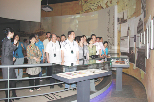 當(dāng)天下午,胡運(yùn)熹一行一踏上老家駱駝這塊土地就感到非常興奮,在鎮(zhèn)海新城管委會(huì),聽(tīng)取了新城規(guī)劃介紹,觀看了沙盤,更是深有感觸。隨后,胡運(yùn)熹一行來(lái)到寧波幫博物館,走過(guò)“時(shí)光甬道”,先后參觀了寧波幫博物館序廳、篳路藍(lán)縷、建功立業(yè)、赤字情懷、群星璀璨和薪火永傳等展區(qū)。“小白菜,嫩艾艾,丈夫出門到上!碑(dāng)解說(shuō)員用寧波話朗讀出一句句寧波民謠時(shí),構(gòu)起了他們童年時(shí)的記憶,海外僑領(lǐng)們熱烈鼓掌,并對(duì)寧波商幫文化的精髓與傳承表示稱贊。胡運(yùn)熹一行來(lái)到鎮(zhèn)海應(yīng)行久外語(yǔ)實(shí)驗(yàn)學(xué)校, 在參觀了體藝館、多媒體教室、語(yǔ)音實(shí)驗(yàn)室等處后,胡運(yùn)熹連連感慨校園的巨大變化。同時(shí)他對(duì)該!盀榱艘磺袑W(xué)生的健康成長(zhǎng),促進(jìn)每個(gè)學(xué)生的最優(yōu)發(fā)展”的教學(xué)理念表示由衷的贊賞。他說(shuō),鎮(zhèn)海在培養(yǎng)人才方面,有這樣好的學(xué)校、這樣的優(yōu)秀的老師,我們的下一代將會(huì)有更好的遠(yuǎn)景,我們的祖國(guó)也會(huì)給世界一個(gè)全新的面貌。