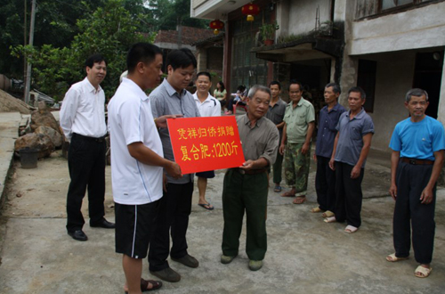 平而村地處中越邊境,有散居歸僑15戶(hù)。憑祥市今年遭遇罕見(jiàn)的特大干旱,農(nóng)民的春耕生產(chǎn)受到嚴(yán)重的影響。為了幫助散居在農(nóng)村的歸僑開(kāi)展春耕生產(chǎn),憑祥市僑聯(lián)在僑界中廣泛開(kāi)展“一幫一”、“多幫一”的“僑幫僑”支農(nóng)惠農(nóng)活動(dòng),得到僑資企業(yè)的大力支持,他們慷慨解襄,出資為農(nóng)村的歸僑購(gòu)買(mǎi)了農(nóng)用肥料,幫助他們解決生產(chǎn)上的困難。此次憑祥市僑聯(lián)專(zhuān)程到平而村為歸僑送去價(jià)值2000元肥料。(周德林)