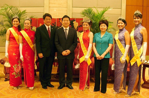 夏威夷中華總商會成立于1911年,1949年開始在華裔女子中舉辦“水仙花皇后”和“公主”的評選活動。1980年開始,組織每屆當(dāng)選的“水仙花皇后”和“公主”到中國大陸訪問游歷,以增長中華文化知識,加深對祖籍國的感情和認(rèn)識。該團(tuán)此行將訪問廣東、云南、北京、河北和上海等地,并出席夏威夷與廣東經(jīng)貿(mào)友好協(xié)議簽訂20周年紀(jì)念活動,代表檀香山市政府與秦皇島市簽訂兩市建立友好城市協(xié)議并參觀上海世博園。