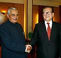 江澤民主席會見印度總理瓦杰帕伊