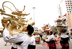 時光流逝,一些中國古老的民間習(xí)俗在許多地方都漸漸消失了,但澳門卻保留得很完整。比如“舞醉龍”,在它的原產(chǎn)地中山市石歧,已多年看不到了,只有在澳門,才可以一睹它的風(fēng)采。 澳門的傳統(tǒng)舞獅也是這樣。每年農(nóng)歷大年初二,都要舉行“醉龍醒獅大會”!白睚垺本褪巧厦嫣岬降,它與常見的舞龍不同,只有龍頭和龍尾,沒有龍身。舞醉龍的武師,邊舞邊被人灌酒,以致帶有幾分醉意,舞姿豪放。“醒獅”就是將一頭新“獅子”點(diǎn)睛開光,儀式十分隆重。 武師認(rèn)為,新來的獅子,只是一個陌生的道具,開光后,才會賦予其生命、靈性,才能與人融為一體,成為一頭活靈活現(xiàn)的生靈。開光時,要在案上鋪上紅布,擺上一只烤乳豬,一只白雞供奉神祉,繼而燃放鞭炮,敲鑼打鼓。擔(dān)任點(diǎn)睛開光重任的,當(dāng)屬資格最老、最年長、最備受敬重者。他在獅頭上灑幾滴清水,用朱紅的筆點(diǎn)在獅子的眼睛上,于是獅子開始蠕動,慢慢抬起頭,突然之間跳躍起來,隨著鼓樂抖擻身軀,象是長眠之后的猛醒。開光之后,在場的人都要分食一塊烤乳豬,據(jù)說吃了以后可以強(qiáng)身健體,久戰(zhàn)沙場,百戰(zhàn)百勝。