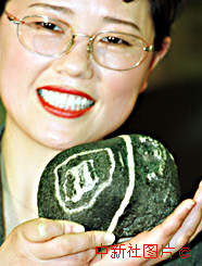 澳門二十二日開幕的南京文化周上,一枚帶有回歸字樣的天然"回歸石"首次公開對外展出。