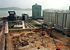 中葡雙方就澳門政權(quán)交接儀式的會(huì)場(chǎng)選址問(wèn)題達(dá)成共識(shí),會(huì)場(chǎng)將是建在澳門文化中心與東方文華店之間的臨時(shí)場(chǎng)館。圖為場(chǎng)地現(xiàn)狀。
