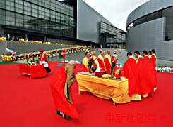澳門文化中心揭幕典禮上正在舉行宗教祈福儀式。該文化中心座落在澳門新口岸填海區(qū)海邊,其建筑造型設(shè)計(jì)新縪,將成為澳門城市的一個(gè)標(biāo)志。