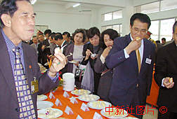 三百多位澳門各界人士19日參觀解放軍駐澳門部隊(duì)珠;,許多人興致勃勃地在食堂品嘗官兵們做的各種小吃。