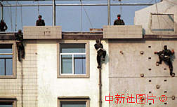 解放軍駐澳門部隊?wèi)?zhàn)士作攀墻訓(xùn)練表演。