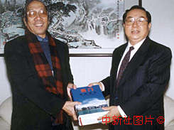 中國大百科全書出版社與澳門基金會(huì)合作編纂的《澳門百科全書》,是由近百名專家歷經(jīng)三載完成。中國大百科全書出版社社長單基夫,近日在北京向新華社澳門分社社長王啟人(右)贈(zèng)送了該書。