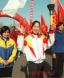 為了紀念發(fā)生在1935年的“12·9學生運動”、迎接澳門回歸,北京中國人民大學十二月八日隆重集會,現(xiàn)就讀于該校的奧運會冠軍王軍霞(中)高擎火炬與世界體操冠軍莫慧蘭(左)、女籃名將李昕參加了長跑活動。作者:張勤