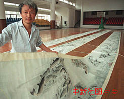 素有“江南漁翁”之稱的安徽省蕪湖市國畫家王宗榮先生,近日繪制了一幅長一百五十米、繪有一千九百九十九條長江全流域群魚的巨作,以賀澳門回歸。作者:吳芳