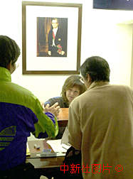 葡萄牙駐澳門總領(lǐng)事館將于十八日舉行開館儀式,工作人員在掛有葡國(guó)總統(tǒng)畫像的辦公室內(nèi)接待來(lái)訪者。