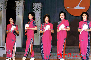 上海僑界老年時裝隊十二月十七日以時裝表演形式慶祝澳門回歸。