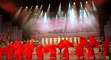 紅衣姑娘在澳門回歸之夜將獻(xiàn)演的慶祝晚會上,歡慶明天紅紅火火更美好。中新社傳真 陳佳攝