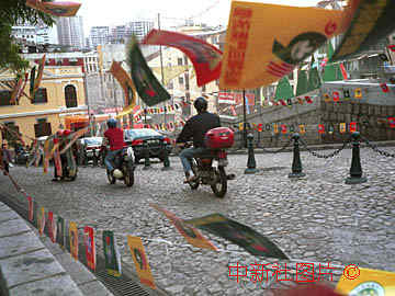 澳門大街小巷回歸之日張燈結(jié)彩,充滿喜慶氣氛。中新社傳真 賈國榮攝