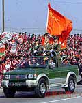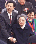 國家主席江澤民21日上午在澳門黑沙灘與澳門小姑娘在一起。中新社/澳新局傳真
