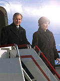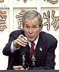 應(yīng)國家主席江澤民的邀請,美國總統(tǒng)布什于2月21日和22日對中國進(jìn)行工作訪問。21日中午,江澤民與布什舉行正式會(huì)談。會(huì)談結(jié)束后,中美兩國首腦共同會(huì)見記者。江澤民表示,他與布什總統(tǒng)的會(huì)談達(dá)成許多重要共識(shí),取得了積極成果。江澤民說,雙方在會(huì)談中回顧了中美關(guān)系30年的歷程,深入討論了當(dāng)前國際形勢。一致認(rèn)為中美作為世界上有重要影響的兩個(gè)國家,應(yīng)加強(qiáng)對話與合作,妥善處理分歧,共同推動(dòng)中美建設(shè)性合作關(guān)系進(jìn)一步向前發(fā)展。