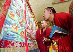 喇嘛們?cè)谑⒋蠊?jié)日吹奏法螺
