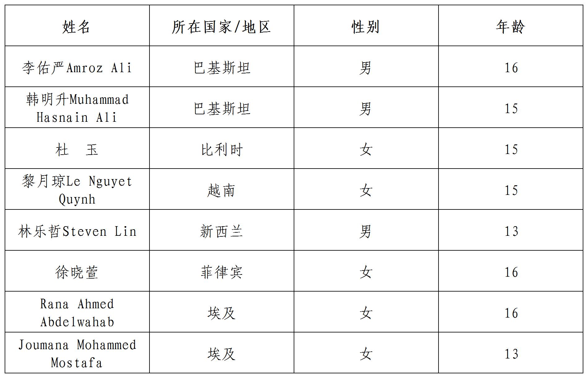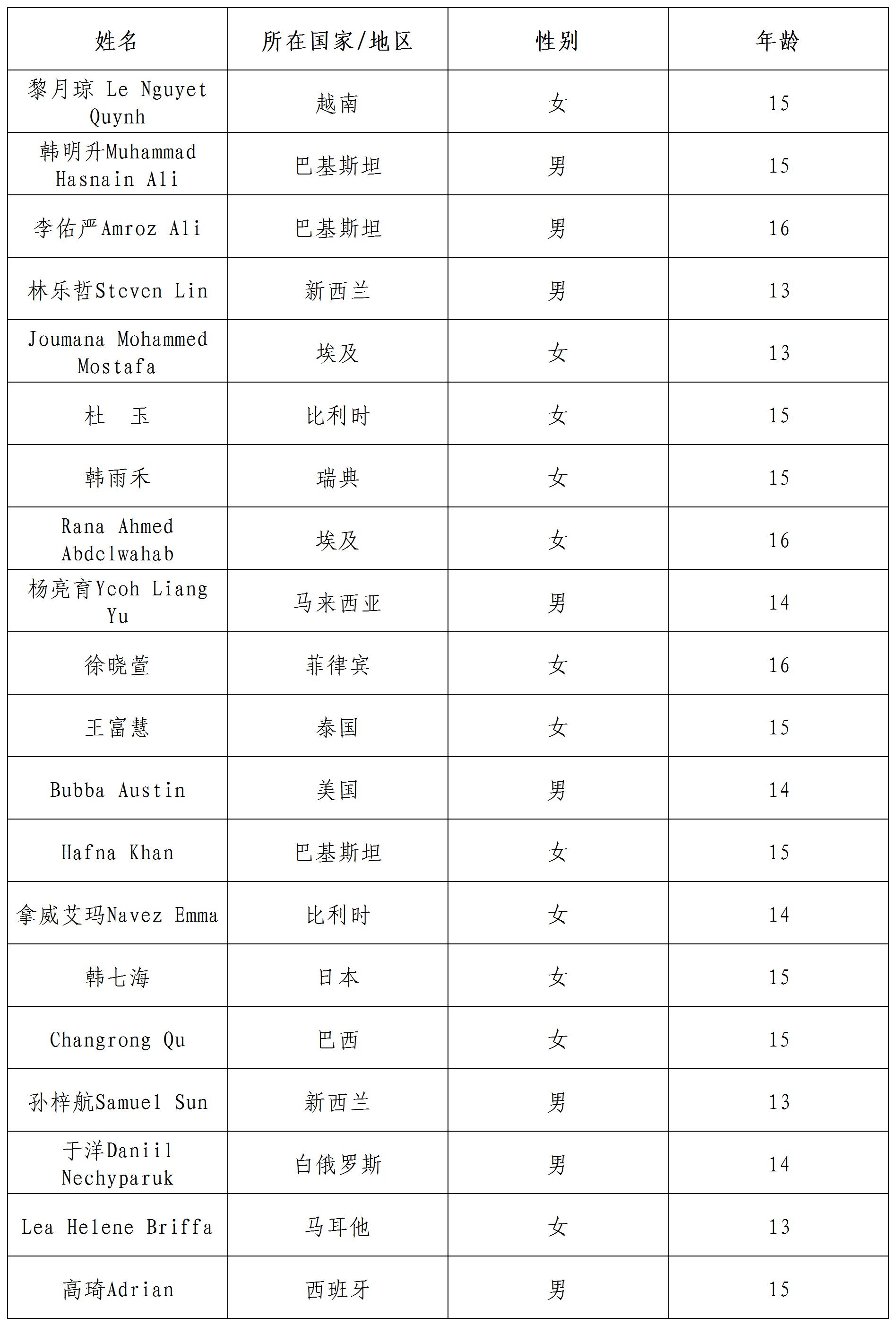 公示時間:即日起至2022年2月1日北京時間24:00 咨詢方式: 郵箱:yszxhd@sclc2017.org 聯(lián)系電話:15810563423 如有異議,請于公示期間致電或郵件咨詢。本活動最終解釋權歸中國宋慶齡青少年科技文化交流中心所有。 備注:標注國家以參與者報名時駐在國為準。