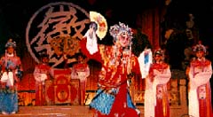 京劇的前身--徽劇 徽劇,淵源于明代的"徽池雅調(diào)"。明朝嘉靖年間,江西弋陽腔流傳到安徽青陽,貴池一帶,與當(dāng)?shù)孛癖娤猜剺芬姷拿耖g曲調(diào)相結(jié)合,創(chuàng)造了新腔,形成了具有當(dāng)?shù)氐胤教厣那嚓柷;青陽腔又受到民間山歌小調(diào)和昆曲的影響,長期發(fā)展而形成今天的徽劇。 清朝乾隆年間,徽劇名藝人高朗亭,郝天壽等,把徽劇帶到揚州演出。當(dāng)時揚州是全國文化中心之一,是"花部"的集中地,但很快即被藝術(shù)精湛的徽劇壓倒。乾隆五十五年,高朗亭又帶到了北京,受到了北京觀眾的歡迎。接著,又引起"四喜","春臺","和春"等徽班進京。 徽劇進京不久,漢劇也進京,徽劇又從漢劇中吸收了西皮,進一步豐富,發(fā)展了自己的聲腔。從此,徽劇不僅闖進了皇宮,振動了京城,而且廣泛流傳,影響了全國.它在北方扎下根子,逐漸吸收了北方的京腔,其高腔與北方語言結(jié)合起來,發(fā)展成為京劇。它在南方的戲曲影響也十分深遠,江西的贛劇、四川的川劇、廣東的粵劇、廣西的桂劇、云南的滇劇,都受到徽劇不同程度的影響。 對徽劇表演藝術(shù)有著突出貢獻的杰出代表是老藝人程長庚。程長庚名椿,字玉珊,安徽潛山人。他把徽音、京音、楚音兼收并用,脫俗創(chuàng)新,卓然成家,對徽劇來說,他起了承前作用,對京戲來說,他起了起后作用,因此,他成為京劇的開山祖師。 徽劇的表演藝術(shù),豐富而多采。它講究平臺與高臺武功,講究身段、亮相的雕塑美,講究人物形象的塑造和畫面氣派等。平臺與高臺武功在徽劇里最為突出,平臺如"獨腳單踢"、"叉腿單踢"、"刀門"、"飛叉"等都異常驚險,至于高臺武工,更為險要,一般演員要翻三張桌子,有的要翻七張桌子。身段、亮相,在徽戲里很有雕塑藝術(shù)感;談∽⒅丶w表演,必要時眾歌齊舞,顯得氣勢壯偉,場面熱烈;談〉膭∧亢芏,據(jù)記載有一千四百零四個,因年代較久,多為手抄本,不少的本子以失傳。解放后,經(jīng)過挖掘整理,富有徽劇特色的代表劇目有:《義虎報》、《巧姻緣》、《齊王點馬》、《水淹七軍》等。